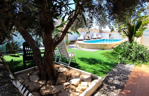 Im Außenbereich entspannen Sie an einem 7x4 Meter großen Pool mit eigenem Sanitärbereich und lassen die Seele unter einem 50 Jahre alten Olivenbaum baumeln.