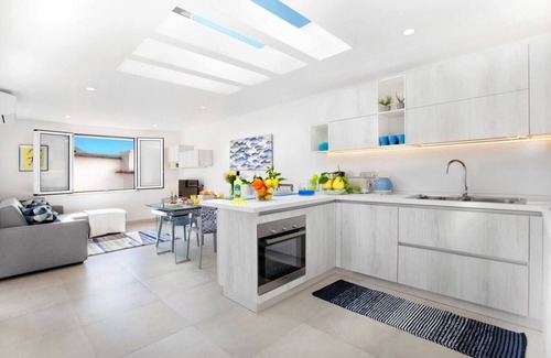 This beautiful modern apartment can be found just 1km away from Positano town, on a pedestrianised area. Within walking distance you can access shops, restaurants, and more. The house’s main feature is its large rooftop terrace furnished with tables, chairs, sofas and offering a panoramic view of the area and sea. Access to the house is via street level, going up a pedestrian area which includes around 50 steps.