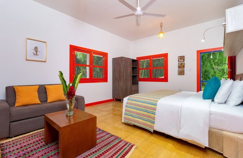Casa Rivera del Cacao offers 9 accommodations with ceiling fans. 32-inch Smart televisions come with cable channels.