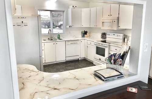 This is an entire 6 bedroom 4 bath home perfect for single or multiple families. It has just finished its complete renovation and has a fully stocked upper kitchen with basics in the lower kitchen. It has amazing amenities, is uncluttered and sparkling clean. Beds are new, comfy and spotless. There are three TVs with Netflix etc. with private areas for the kids to hang out and give you some space! I treat each of my clients/guests as five star and you are in good hands with me.