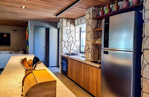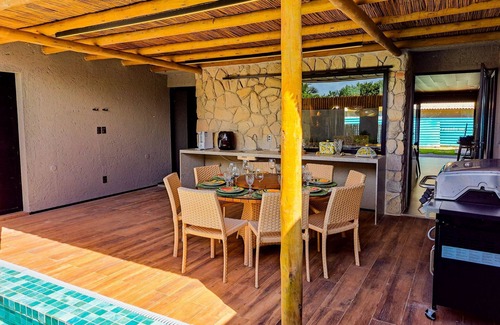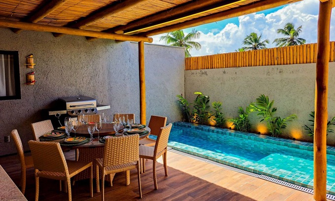 The fully equipped kitchen is ready for your best recipes, while the gourmet space invites relaxed gatherings. How about relaxing in the stunning pool, where you can make the most of the tropical climate of beautiful Tatuamunha Beach?