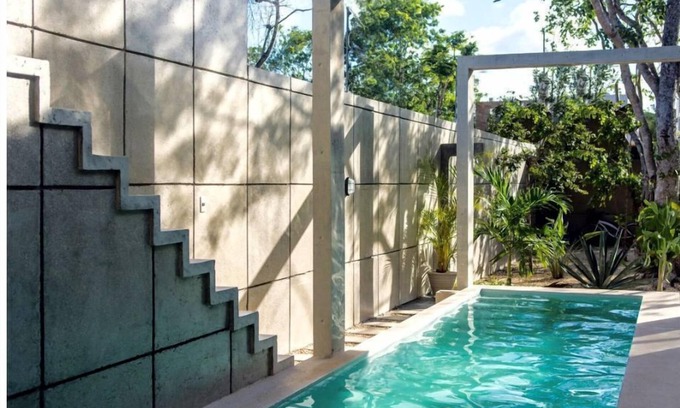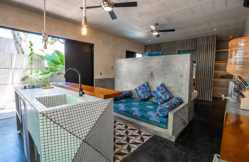 Casa T is a multi-unit home consisting of 2 studios and 1 - 1 bedroom apartment located in the red hot residential neighborhood of La Veleta, minutes from Tulum’s charming downtown. This house was completed in early 2015 and has won regional awards for its innovative design and has been featured in over 33 international design and architecture magazines as one of the most impressive achievements in architecture of 2015. Some of the magazines it has been featured in are: Archdaily, Design Milk, Domus, Yatzer, Ambientes, and Architizer.