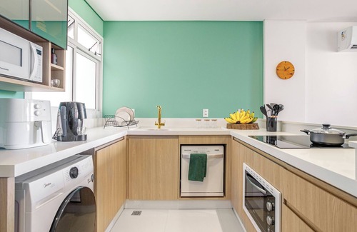 The flat has brand new high-end furniture and equipped with all the utensils and appliances you might need, including washer-dryer, dishwasher, air-fryer, a 55" smart TV with Netflix included, air conditioners in the living room and main bedroom, a small jacuzzi, among others.
