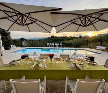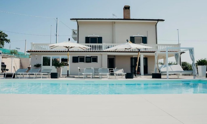 16 miles from Pescara Train Station in Pescara, Casa Vacanze Di Luzio features accommodations with access to a fitness room. This property offers a private pool, free Wifi, and free private parking. Pescara Port is 18 miles from the villa and La Pineta is 19 miles away. Offering direct access to a balcony with pool views, the spacious air-conditioned villa consists of 6 bedrooms. Featuring a terrace with mountain views, this villa also includes a flat-screen TV, a well-equipped kitchen with a dishwasher, an oven, and a toaster, as well as 4 bathrooms with a bidet and bathrobes. The property has an outdoor dining area. Guests can also relax in the garden. Pescara Bus Station is 16 miles from the villa, while Gabriele D'Annunzio House is 17 miles from the property. Abruzzo Airport is 18 miles away.