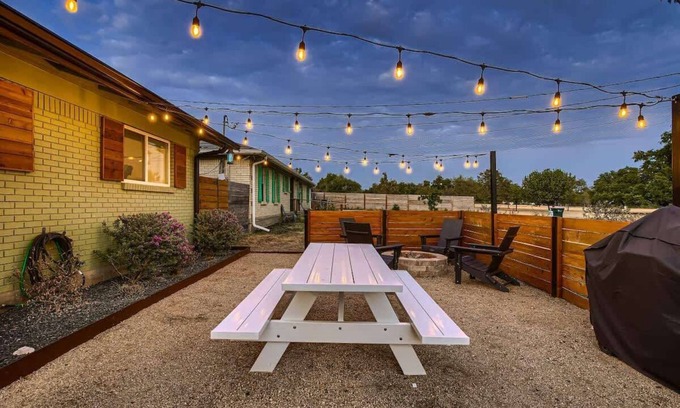 Howdy and welcome to Casa Verde, a midcentury gem located in historic Georgetown, Texas. Fully remodeled, this home is stocked with all you need for the perfect stay, designed w/local artisans in mind. The private street is adjacent to open fields for kids to play, and the fenced yard provides privacy if desired. The front courtyard has a cozy and intimate outdoor lounge space equipped w/charcoal grill, fire-pit and plenty of seating. Comfy beds and furniture for lounging throughout the house!!