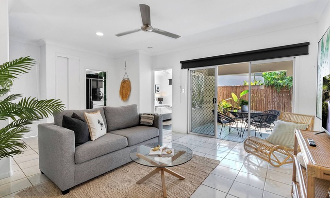 Peacefully tucked away in Manoora, but just a 10-minute drive from Cairns’ city attractions, three minutes to Edge Hill’s dining precinct and a short stroll to the local grocer, this chic apartment offers a comfortable base to enjoy your next tropical getaway. A spacious open flow extends to a private courtyard set for alfresco dining. Split-system cooling, off-street parking and an in-unit washing machine add to your convenience.