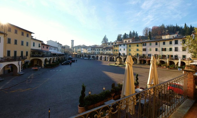 Casagreve is located in the historical center of Greve in Chianti (25 km from Florence), on the Piazza Matteotti. This triangular square is surrounded by arcades, under which you will find shops, cafés and restaurants.
