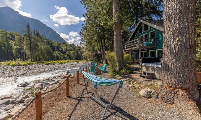 Cascade Jewel is the ultimate escape with comfort, relaxation, and style waiting to welcome you after a day of mountain adventures. Words cannot even describe the breathtaking view that surrounds this property, nestled against sheer granite cliffs with the wild emerald waters of the Skykomish River rolling by and the area's most impressive peaks of Mt Index and Mt Persis towering above. This gorgeous craftsman home has been fully remodeled in December 2020 with chic and elegant décor and furnishings, creating a truly decadent mountain retreat.