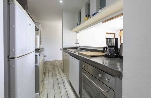 In the suite you will find: a bright living room with 2 sofas, tv, stereo and 1 portable air conditioner; an open space with large dining table, sofas, desk and large French window; a kitchen equipped with oven, microwave, coffee maker, refrigerator and dishwasher.