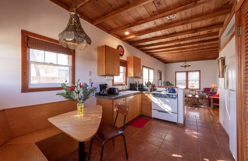 Casita Bonita offers all the amenties you will need for a comfortable stay and has a large fenced backyard with an outdoor seating area and a fire pit.
