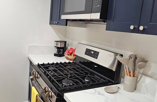 Unwind in the bathroom’s bathtub, enjoy the comfort of central heating and air conditioning, reliable Wi-Fi, and your own washer and dryer.