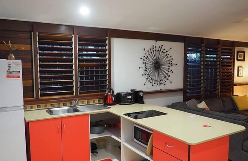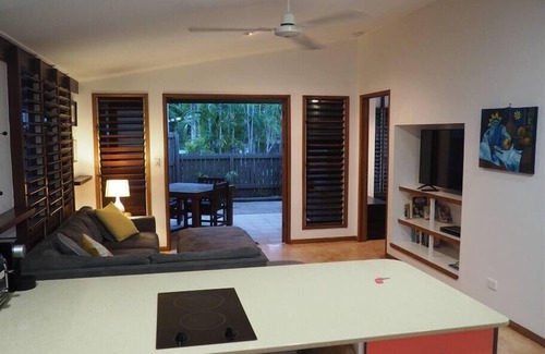 This fully self contained cottage is across the road from the beach and is set amongst tropical rainforest gardens.