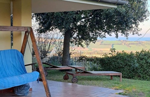 A small private garden equipped with table and chairs, rocking chair and sun loungers and a beautiful view over the entire Marche coast make this apartment a small corner of peace to enjoy a few relaxing days discovering the Marche.