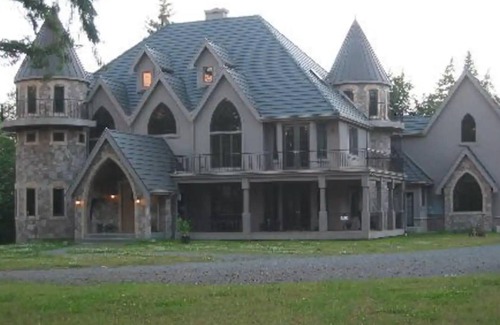 Private MIL in my Castle home on acreage on the Woodinville/Redmond border. 5-15 min to stores, wineries, Tech Cos.-downtown Redmond/Woodinville Totem Lake Kirkland, 20-25 to Bellevue, 25-35 Seattle. 750 Sq.' with 20' vaulted ceilings. Skylights, Dormers with closets. Private Entrance. King bed in main room. Multiple rooms, incl. the Queen bed hobbit bedroom with skylight/window. Private entrance up 2nd floor. Huge yard with woods. Kitchenette, TV, Workdesk, Comfy Chair. Two friendly dogs here. The Hobbit sleeping room has a comfortable queen air mattress. It's a great Meditation room too. The apartment is part of the main house, connected at a hall/closet- its sound isolated and locked for mutual privacy. Please do not book if you wish to avoid possible interaction with my 2 sweet, guest-loving dogs. They are a 10-year-old Border Collie and a 7-year-old Standard Poodle. Parking is outdoors near the apartment entrance. Please notify us of any visitors. The neighborhood is country-like and great for walking. Trails in the woods are nearby. There are no streetlights, so please illuminate yourself for safety while walking after dark. You must go up and down outside wooden stairs that have 9" tread. They are well-lit, but it may be raining and rarely snowing. In the winter, I place tread grips on them in case of freezing. Always use the hand railing. I do not recommend this place for anyone who does not wish to use these stairs. The Washer and Dryer are shared with me and my household. They are located in the laundry room downstairs from the AirBnB. Please contact me beforehand to make sure the machines are available when you need them.