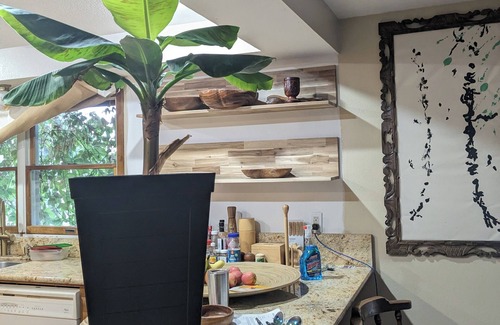 Large bedrooms with comfy beds means you won't have trouble finding peace in this quiet neighborhood. The house is historic with much of the original charm being preserved. Lavished with hip decor and authentic artwork throughout some pieces will be celebrating their 80th birthday soon, a lot of which coming from neighbors homes after they passed and were saved fromsent to the landfill by investors, we thought it would be a nice way to honor this areas uniqueness. Solar powered water features, bird baths for the copious local fauna (bevys, piteousnesses, casts, and once even an attempted murder 🐦⬛), short walk away from multiple parks including legacy, lots of room to spread out and relax.