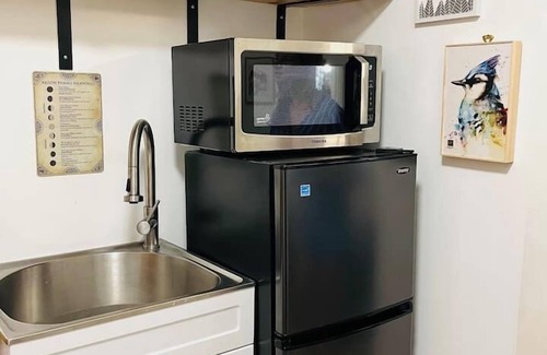 We welcome you home in this cute studio suite with a full size bathroom, kitchenette and bedroom.