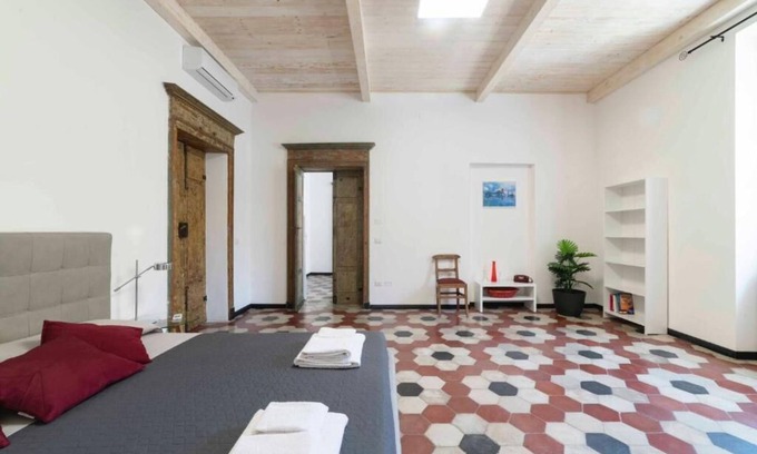 The house has two large comfortable, bright double bedrooms overlooking Via Cavour. A bathroom with shower, washing machine, a large kitchen equipped with all accessories and a terrace on the same street. Maniacally renovated trying to recover everything original, doors, floors, walls, and made functional to accommodate you without anything missing. The entrance has been restored to its original state with the tuff wall in evidence and the red brick typical of Sassari houses.