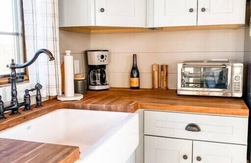 Cedar Brook Cabin is tiny vacation living at its finest. The house offers two bedrooms (one master bedroom with door on the main floor and a second loft bedroom), full kitchen with four-burner gas stove and oven, farmhouse sink, butcher-block countertops, microwave, toaster oven, AC, 40” Smart TV, high speed WiFi (300 mbs), small soaking bathtub with shower, flushing toilet, Casper mattresses, outdoor area with Breeo firepit, Adirondack chairs, picnic table and Weber grill...just to name a few features. Come enjoy Maine in a whole new way! Dogs welcome with a $100 pet fee.