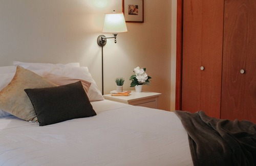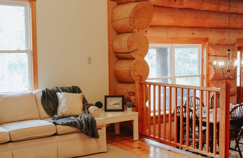 Charming Accommodations: The lodge features two cozy bedrooms on the main floor, each outfitted with a queen bed draped in Sojourn's signature white linens, promising a restful night's sleep.
