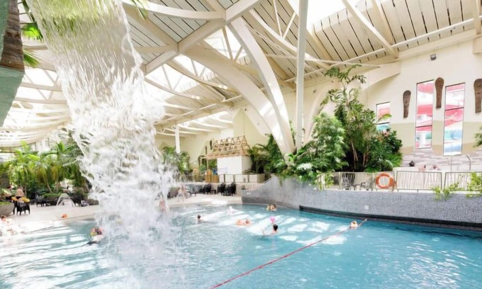 Child friendly resort "Center Parcs Park Bostalsee". Outside the resort, 10 km from the centre of Nohfelden, on a slope, on the lake, on the beach, in the countryside, in the woods. For shared use: indoor pool heated. Shower/WC in the pool area, children's pool, slide, hot tub, tennis (extra), basketball, volleyball court, beach volleyball, children's playground. In the complex: reception, restaurant, bar, breakfast room, sauna (extra). Massage (extra). Spa area (extra) table tennis, billiard table, trampoline, shopping facilities, bicycle rental. Available: bowling (extra). Breakfast possible (extra). Central parking spaces. Railway station "Türkismühle" 7 km. Golf course (9 hole) 8 km. Nearby attractions: Nahequelle mit Wildfreigehege, Sternenwarte Peterberg, Strasse der Skulpturen. Please note: car-free holiday complex. The owner does not accept any youth groups. Fishing [permit required] (extra). Loading and unloading of baggage is possible at the holiday house. The photograph shows a typical example. All houses/apartments are individually designed/furnished. The holiday park with terraced houses in timber construction (some with lake view) is located directly on the 120 ha large reservoir "Bostalsee", a paradise for swimmers, sailors and windsurfers. The focal point of the complex is the covered "Market Dome" with various restaurants, panoramic terrace overlooking the beach and lake, shops, House of Games and the children's activity program "Wannabe". In the subtropical water paradise "Aqua Mundo" (free of charge) with indoor and outdoor pools, slides (up to 130 m) and wave pool nothing to be desired. Sports arena, archery, mini golf, pony riding and boules are other parts of the extensive recreational activities. Facilities partly extra. Pedal and electric boat rental (extra).