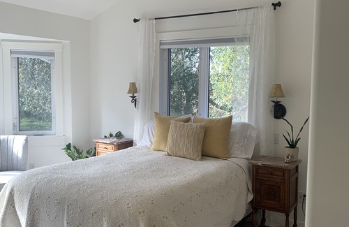 Enjoy the new back lawn and created flower beds. You can also visit our garden, see the bees we keep and watch the cows and llamas. You may even hear the roosters in the morning.