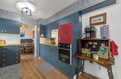 The kitchen has all the basics you will need, and a fully stocked coffee bar with coffee, tea, and hot cocoa.