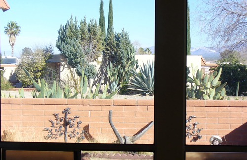 This property requires a minimum three month Winter Rental for the from the latter part of December through the middle of April. The property is a two bedroom end unit townhouse located centrally in one of the original areas of Green Valley. The home faces south and has a great view of the mountains to the east from the front patio and living room. Being centrally located, the property has convenient access to shopping, many churches and the community library. Larger than a 'Villa" or "Casita, the unit has an open plan decorated with bright neutral colors. The master bedroom has an adjacent bathroom and the room can be set up as either a king or two twins while the second bedroom is equipped with two twin beds. There are also two pullout sofas in the living room for additional sleeping. There are several GVR facilities nearby that are available at an additional cost. The facility in Casa Paloma II is only two blocks away and has a full size pool, a hot tub and shuffleboard courts. The East Social Center is a larger facility and is about a mile away and has a pool and hot tub, tennis courts, pickleball courts and a workout room. The townhouse has a fully equipped kitchen and has a 42" flat screen TV with expanded cable, internet, DVD and VCR player . A full size washer and dryer are located next to the kitchen and across from a large pantry.