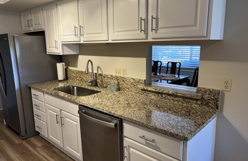 The newly remodeled kitchen is well equipped with everything you may need during your stay.