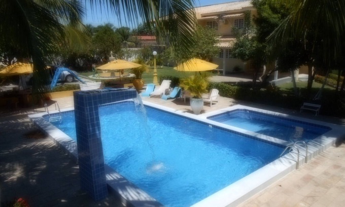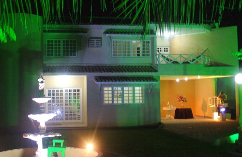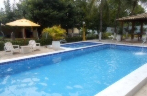 Beautiful leisure house situated 10 km from the city of Marechal Deodoro in the village of Massagueira and 15 km from Alagoas?s state capital city, Maceió. It is a cosy place with infrastructure just to serve you. Four bed-roomed house, with two suites, small fridge, closet, veranda, large kitchen, swimming pool with a cascade for adults and a swimming pool for children, illuminated football court; open-air showers, electric barbecue grill, two sheds, playground, house keeper and a beautiful garden (please visit site: ?).