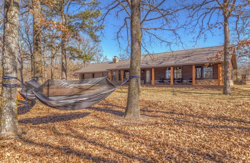 Chahta Clearwater Lodge is a peaceful retreat just 1.5 miles from Lake Tenkiller State Park. It sleeps 10 with 3 bedrooms, 2 baths, and a large bunkroom. No pets allowed. Enjoy high-speed internet, smart TV, full kitchen, and baby essentials. Relax indoors or outdoors with hammocks, fire pit, cornhole, and more. Two long driveways offer boat/trailer parking. Set on 11 wooded acres, it's the perfect mix of comfort and nature near all the fun!