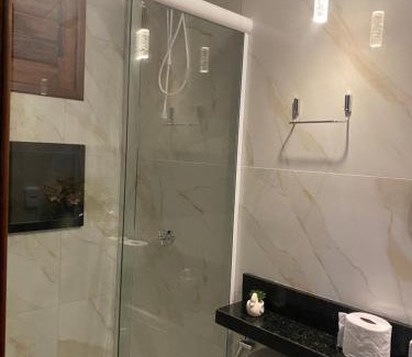 This property offers a pool with a view, free Wifi, and free private parking. The accommodation provides full-day security and private check-in and check-out for guests. Leading onto a balcony with garden views, the spacious chalet consists of 3 bedrooms. Providing a terrace with mountain views, this chalet also provides guests with a flat-screen TV, a well-equipped kitchen with an oven, a microwave, and a fridge, as well as 3 bathrooms with a bidet. The property has an outdoor dining area. Kids pool is also available at Chalé Bella Vista, while guests can also relax in the garden. Pinto Martins Airport is 64 miles away.