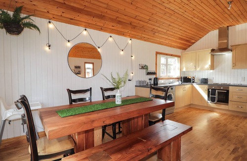 Chalet C, a single-storey holiday home consists of an open-plan living space including a kitchen with an electric oven, grill, and hob, microwave, fridge with freezer box, washing machine, a dining area with seating for six people, and a sitting area with TV. the bedrooms consist of a double and a twin, along with a shower room. Outside, there is a non-enclosed side garden with decking, furniture, and off-road parking for 2 cars. Pet-friendly. Please note that this is a non-smoking property. Shop and beach 1.7 miles, pub 1.6 miles. WiFi, fuel, power, bed linen and towels are all included in the price. Enjoy a countryside and coastal retreat at Chalet C. Note: Approach to property is on a single track road. Note: There are a few steps up to property, please take care.