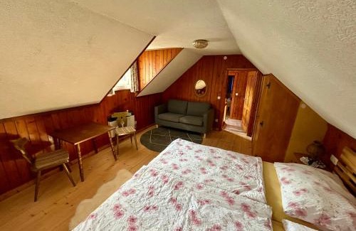 BathroomPrivate bathroom, Towels, Hairdryer, Toilet, Shower, Toilet paperMedia & TechnologyRadio, Satellite channels, TV, Flat-screen TVKitchenDishwasher, Refrigerator, Cleaning products, Wine glasses, Oven, Stovetop, Kitchenware, Dining table, Coffee machine, Electric kettle, KitchenetteGeneralPrivate entrance, Heating, Hardwood or parquet floors, Trash cans, Fire extinguisherLiving AreaFireplace, SofaBedroomLinens, Wardrobe or closetBuilding CharacteristicsDetachedRoom AmenitiesSocket near the bed, Drying rack for clothing, Clothes rack |