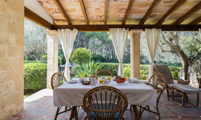 Cozy and spacious detached house with a garden and a large terrace with a porch. The porch offers the perfect place to enjoy a hearty breakfast in the sun or a long summer dinner with family or friends, surrounded by the peace and quiet that this beautiful area of Mallorca offers.