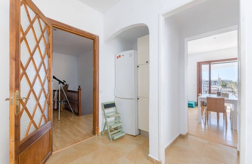 The villa features a private 8x4 meter pool, surrounded by a sun terrace with loungers, and a barbecue area perfect for outdoor dining. A spacious first-floor terrace offers stunning views over the rooftops of Cala Major. Inside, the bright living room is equipped with a sofa, satellite TV, air conditioning, and access to the terrace. The fully-equipped kitchen includes a ceramic hob, microwave, coffee machine, and toaster. Situated in Palma de Mallorca, just 400 meters from Cala Major beach, this spacious villa with a private saltwater pool offers a perfect blend of city and beach holiday. With ample space for 7 people, the villa is ideally located between the city and the sea, making it a fantastic choice for both relaxation and exploration. The trendy district of Santa Catalina is 5.5 km away, where you'll find markets, tapas bars, and vibrant nightlife. The golf course Son Vida is just 4 km away, and Palma's city center, with its museums, galleries, and cultural sites, is a short distance from the villa. There are four cozy bedrooms, including two doubles, one with two single beds, and one with a single bed. Two bathrooms and two toilets provide ample convenience. Families with young children will appreciate the cot and high chair. Air conditioning is available in the living room and hallway. With restaurants, bars, shops, and the beach all within walking distance, a car is not necessary. Please note: Parties, events, and pets are not allowed, and young groups under 20 are not permitted. A tourist tax applies, and ID verification is required for all guests over 16.