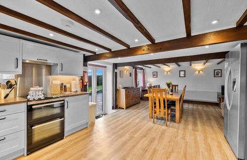 Escape to a serene retreat nestled in the picturesque Ruby Country of North Devon, where families and groups can rejuvenate and explore the stunning landscapes. Surrounded by 33 acres of shared grounds, this spacious haven provides ample outdoor space for relaxation and adventure. The famous Tarka Trail lies just eight miles away, offering scenic walking and cycling opportunities for nature enthusiasts and their furry companions, while a meandering public footpath invites you to explore the beauty of the countryside. Take advantage of the owner's three coarse fishing lakes, perfect for a tranquil afternoon by the water. Inside, the thoughtfully designed interiors create a welcoming atmosphere for your stay. The open-plan kitchen and dining area bask in natural light, equipped with everything you need for meal preparation, including an electric cooker, microwave, and spacious American-style fridge. A utility room with laundry facilities adds convenience, while a separate sitting room featuring a smart TV and electric reclining sofa ensures cozy evenings in. Enjoy restful nights in one of the four well-appointed bedrooms, including a master suite with an en-suite shower, making it easy for everyone to recharge after a day of adventure. This retreat is truly dog-friendly, inviting well-behaved pets to join in the fun while ensuring they remain on a lead when exploring the grounds of the working farm. You’ll find a special welcome pack for your four-legged friends, complete with treats and essentials, making them feel right at home. Enjoy local delights like homemade jams, fresh eggs, and seasonal produce from the honesty shed shop. With charming village amenities just two miles away and the breathtaking North Devon coastline within easy reach, you’ll have everything you need for an unforgettable getaway.