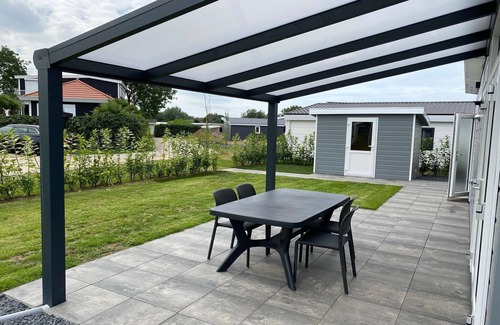 This stylish chalet is furnished in a complete way and fully equipped. The large windows in the living room with open-plan kitchen provide a spacious feeling. There are two nice bedrooms with ample closet space and comfortable single or double box-spring beds. Life outdoors is also very nice here. In your garden you will find a terrace with garden furniture.