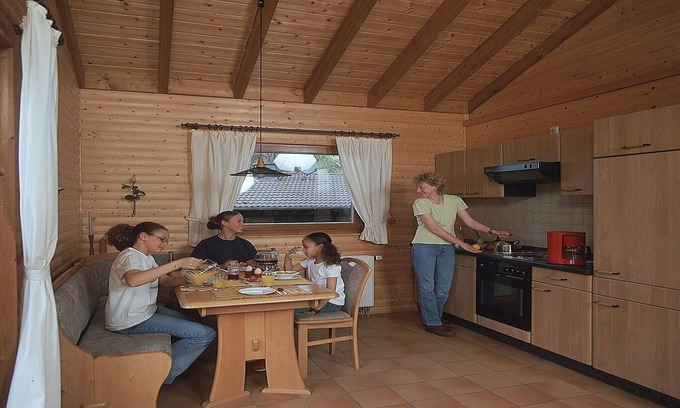 The accommodations in the small holiday park Reinskopf come in three different types: a 2 person ground floor apartment (DE-54614-05), a 4 person apartment on the first floor (DE-54614-06) and a 6 person detached chalet (DE-54614-04 and DE-54614-09). The latter is a combination of the 2 and 4 person homes. The chalet has two separate entrances; one on the ground floor and one on the upper floor. Furthermore, there are two living rooms, two kitchens, and two bathrooms. The upper floor has enough space for a comfortable stay with 6 people; only for sleeping, 2 people have to use the ground floor. All types are large, nicely decorated and have a balcony and terrace with garden furniture. In the DE-54614-04, -06, and -09 types you also have a cosy open fireplace.
