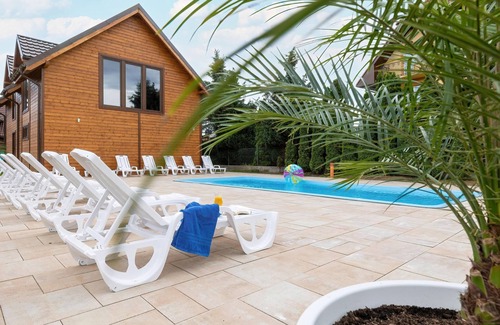 Newly built, small holiday complex with tastefully furnished wooden holiday homes, just a few steps from the Baltic Sea and the sandy beach. Each of the holiday homes is equipped with WLAN and has a cozy, furnished terrace with a barbecue. The family-friendly Baltic Sea resort of Rewal is only 110 kilometers behind the German-Polish border and is one of the most beautiful fishing and bathing resorts in the region. The pretty historic town center from Prussian times has been preserved and various shops, cafés and restaurants ensure a cozy atmosphere. A newly designed promenade runs along the cliffs and invites you to take beautiful walks. Incidentally, in Rewal the fishing boats still go out to sea every day and are pulled onto the beach after a successful catch. About Belvilla At Belvilla, you experience holidays exactly the way you want. Choose from an extensive range of holiday homes, apartments and caravan parks from Europe to Florida. From a cabin by the Norwegian fjord to an exclusive villa on the Côte d'Azur, and from an apartment in Rome to a country estate in Tuscany. At Belvilla you will find the perfect holiday home for an unforgettable time with your family, partner or friends. You will also find holiday homes for larger groups, spread across various regions in Europe.