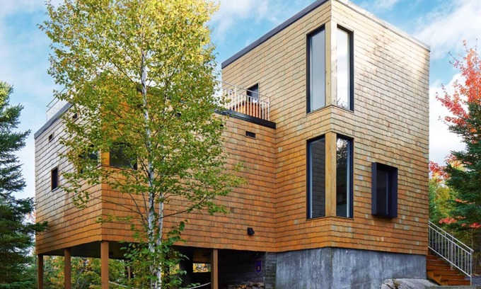 Tucked away at the end of a private road winding through the trees, La Plaisance is composed of two interconnected volumes one vertical, firmly anchored into the rock, and the other horizontal, perched on stilts. The chalet unfolds over two levels. The ground floor features the common areas, which open generously onto a large terrace overlooking the surrounding forest and the Saint Lawrence River. This level also includes two bedrooms and a bathroom. Upstairs, a hybrid room with a Murphy bed serves as a lounge or extra bedroom, with access to a spacious rooftop terrace. Whether dining outdoors while admiring the majestic river, soaking in the jacuzzi in peaceful seclusion, or basking in the sun undisturbed, La Plaisance offers the privacy to fully embrace the charm of the natural surroundings. Expansive windows flood the interior with light and frame a unique panorama from every room. Simple, modern volumes combined with rustic decor provide a sense of serene disconnection for all who stay at La Plaisance.