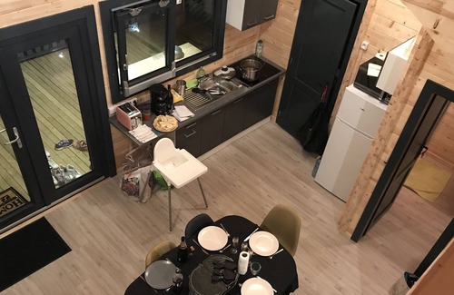 In a residential leisure park, our chalet design and fully equipped 55m2 can accommodate from 4 to 8 people.