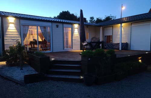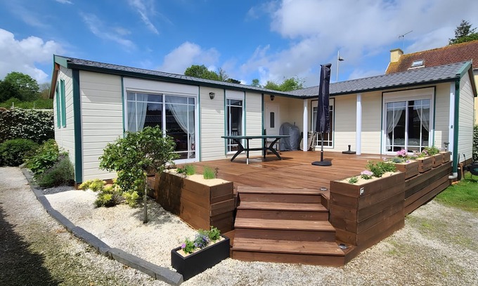 Discover our 83 m² chalet with its terrace of about 30 m², featuring a fully equipped kitchen open to the living and dining room.