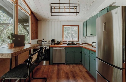 Inside, you'll find a clean, bright space designed for relaxation. Curl up with a good book, enjoy playing games, or soak in the cast iron bathtub. The cabin’s woodstove creates a warm, inviting atmosphere, perfect for sipping cocoa fireside after a day of skiing at Stevens Pass, just 20 minutes away.