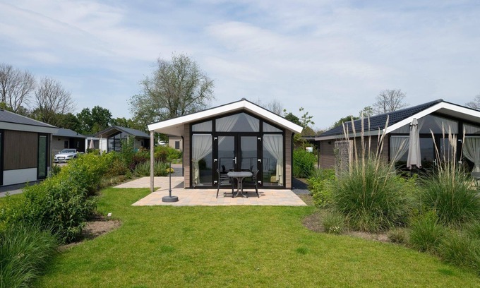 The name says it all: the Pavilion Waterfront 4 is right on the water's edge. This detached, single-storey chalet can accommodate 4 people. In the cosy living room you will find a sitting area with television and a separate dining area. The open kitchen is equipped with a dishwasher, microwave and filter coffee maker. In total there are 2 bedrooms: 1 bedroom with a double bed and 1 bedroom with 2 single beds. There is also a bathroom with shower and toilet. Through the folding doors you can reach the covered terrace with garden furniture. But the highlight of the Pavilion Waterfront 4 is the decking on the waterfront! (please note, accommodation number 42 is located at the water but does not have a waterside decking). At this house you can park 1 car and there is free Wi-Fi available.