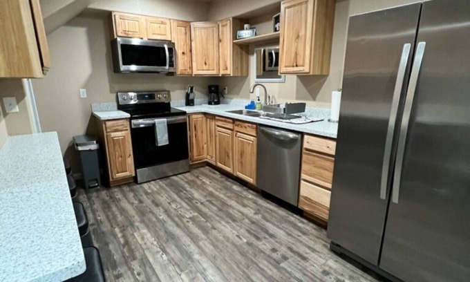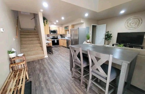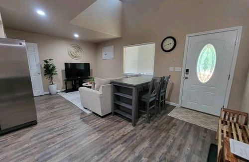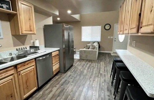 Come and relax in our beautiful home with brand new furniture. Centrally located with a covered carport for your convenience! Just minutes from the gas station, coffee shops, bowling alley, banks, doctors, stores, etc. All your needs will be close by! Some amenities include Wifi, Smart TV, washer & dryer in unit. You will have a full kitchen with dishwasher to cook all your meals. A electronic keypad is on the front door for convenient check in.