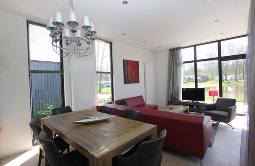 The Cube Exclusif 4 is an elegant house built under architecture. This gives it a stylish and exclusive appearance. Thanks to the raised ceiling of approximately 3 metres and the high windows, the house feels extra spacious. The holiday home is on the ground floor and suitable for 4 persons. In the living area you will find a sitting area with television, a dining area and a sliding door with access to the terrace with garden furniture. The kitchen is equipped with a gas stove, microwave, dishwasher, fridge-freezer and a Nespresso Professional Machine (capsules for this machine are sold exclusively at the reception/mini-market). In the holiday home you will find 2 bedrooms, 1 bedroom with a double bed and 1 bedroom with two single beds. There is a bathroom with shower and a separate toilet. You can park 1 car at this accommodation and there is free Wi-Fi.