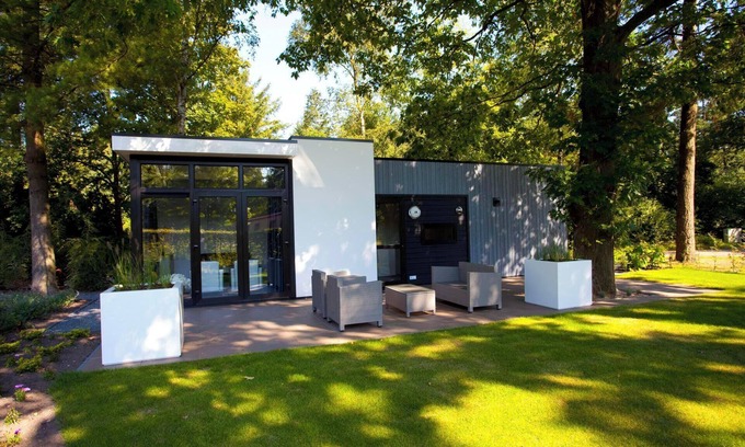 The Cube la Mer 4 has a modern and robust exterior with a warm interior. The detached chalet is stylishly built under architecture. Thanks to the high windows there is a lot of light. The chalet is on one level and suitable for 4 persons. In the living area you will find a dining area and an open kitchen, which is equipped with a dishwasher, electric kettle, combination microwave and a Nespresso Professional Machine (capsules for this are only available at the reception/mini market). There are 2 bedrooms, each with 2 single boxsprings. The bathroom has a shower, washbasin and toilet. From the living room you can access the spacious sun terrace with garden furniture. You can park 1 car at the Cube la Mer 4 and you have free Wi-Fi at your disposal.