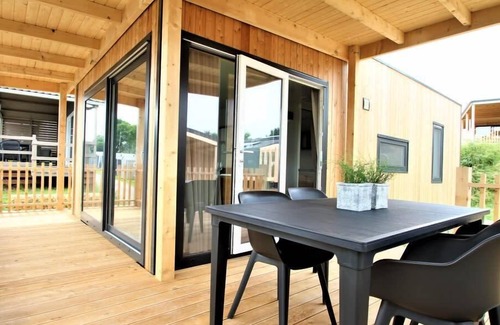 The cosy and modern chalet Bellevue 4 is equipped with all conveniences during your stay. The detached chalet is on the ground floor and offers room for 4 people. In the living room you will find a sitting area with television, a dining area and a kitchen with a dishwasher, microwave and filter coffee machine. There are 2 bedrooms in total, 1 with a double bed and 1 with 2 single beds. In the bathroom you will find a shower and washbasin. There is a separate toilet. Outside you can enjoy a furnished roofed terrace (C 228 and H 326 do not have a roofed terrace). There is parking space for 1 car at the chalet and you can connect to the wifi for free.