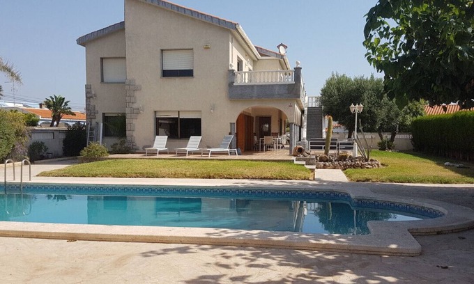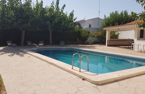 VILLA RIOGRANDE (8 pers.) Nice house with privated POOL in the beach. WIFI. 4 rooms, dining room , kitchen,2 baths room and toilete with shower. Terrace and 2 parking. Air conditioning dining room and 2 rooms. 100 m. from de beach, 2,5 km. From shops and Vinaros center-city.