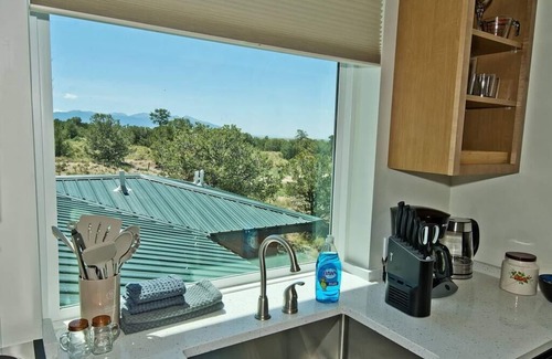 Welcome to Challenger Views on Ridgecrest! Enjoy vintage modern luxury, expansive views, a great open kitchen, two private bedrooms and second floor deck for stargazing during your Crestone stay. This beautiful space is located on the far edge of the Baca Grande Subdivision less than a mile from the North Sand Dunes Park entrance. It's a great place to stay and explore Crestone and the San Luis Valley or enjoy a resting getaway.Challenger Views is a great place for vacations with family and friends, or quiet retreats.
